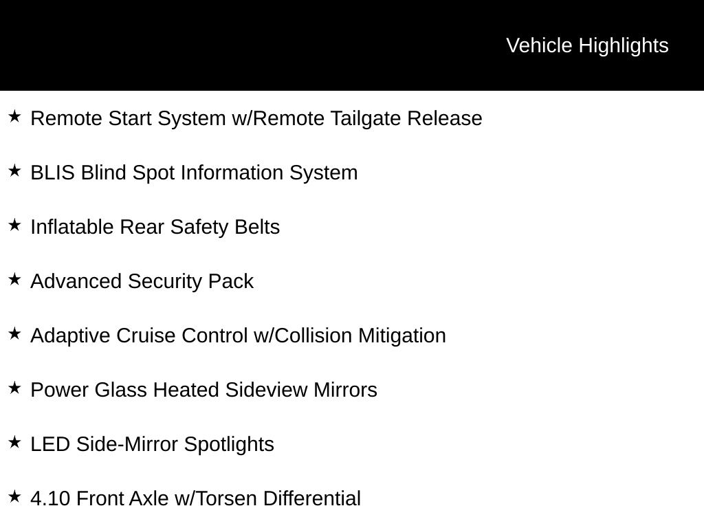 - Radio: Sony Single CD w/HD & SiriusXM Satellite