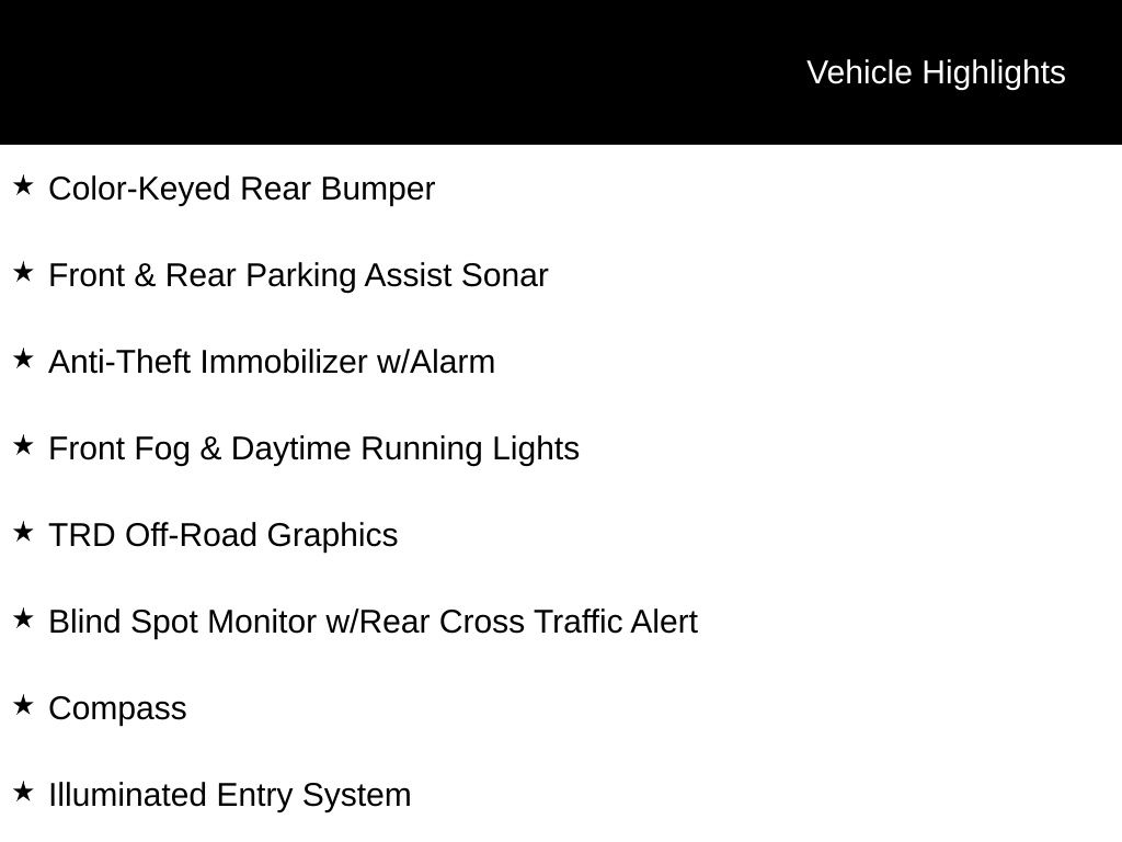 - SR5 Safety & Convenience Package with blind spot monitoring and rear cross-traffic alert
