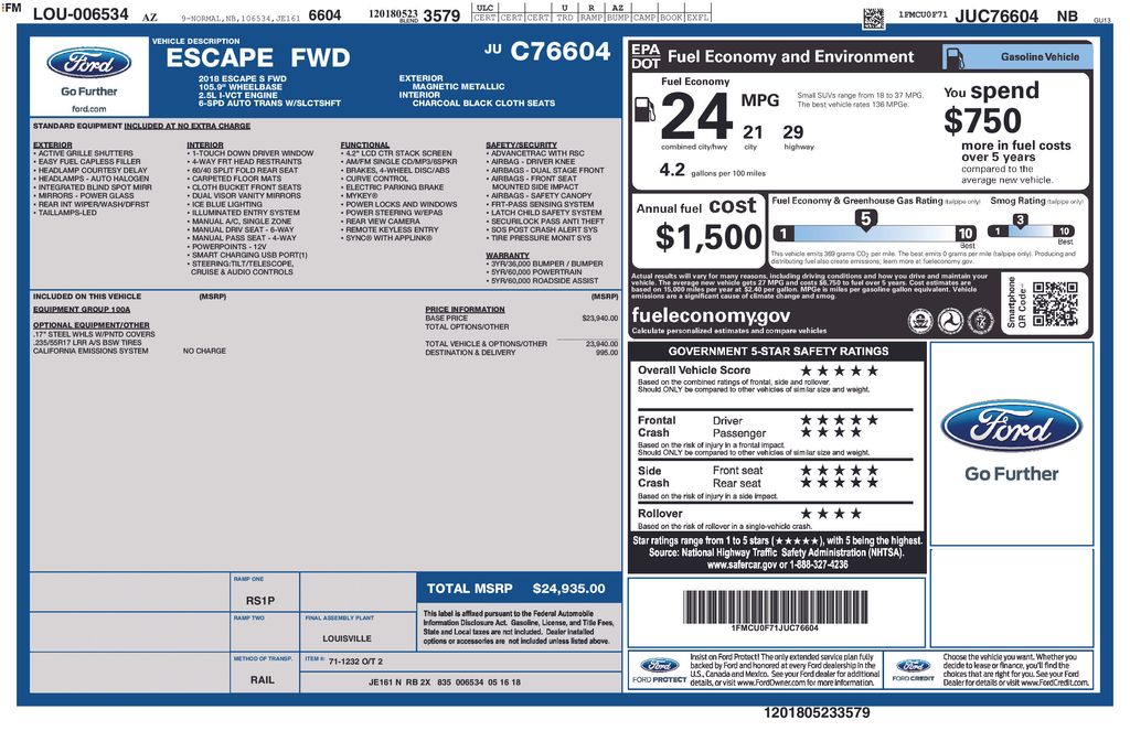 https://qualityfordresearch.com/cars/Used/2018/Ford/Escape/S/167950032018 Ford Escape S