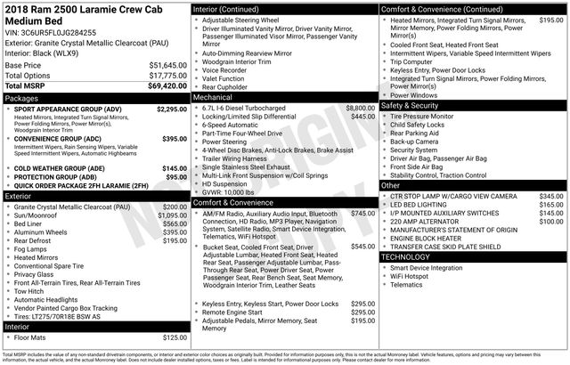 Granite Crystal Metallic Clearcoat 2018 Ram 2500 Laramie 4WD 6-Speed Automatic Cummins 6.7L I6 Turbodiesel