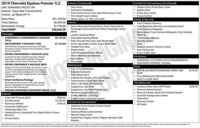 Cajun Red Tintcoat 2019 Chevrolet Equinox Premier FWD 6-Speed Automatic Electronic with Overdrive 1.5L DOHC