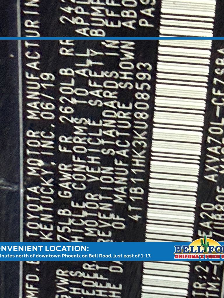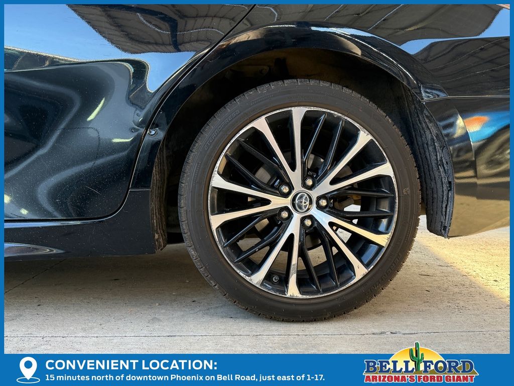 ** HERE AT BELL FORD ITS ALL ABOUT THE EXPERIENCE** Please visit us online at www.bellford.com This Toyota Camry is equipped with the following options: Black w/Perforated Leather Seat Trim, 4-Wheel Disc Brakes, 6 Speakers, ABS brakes, Air Conditioning, Alloy wheels, AM/FM radio, Apple CarPlay, Auto High-beam Headlights, Automatic temperature control, Brake assist, Bumpers: body-color, Delay-off headlights, Driver door bin, Driver vanity mirror, Dual front impact airbags, Dual front side impact airbags, Electronic Stability Control, Emergency communication system: Safety Connect, Exterior Parking Camera Rear, Fabric Seat Trim w/SofTex, Four wheel independent suspension, Front anti-roll bar, Front Bucket Seats, Front Bucket Sport Seats, Front Center Armrest, Front reading lights, Fully automatic headlights, Illuminated entry, Knee airbag, Leather Shift Knob, Low tire pressure warning, Occupant sensing airbag, Outside temperature display, Overhead airbag, Overhead console, Panic alarm, Passenger door bin, Passenger vanity mirror, Power door mirrors, Power driver seat, Power steering, Power windows, Radio data system, Radio: Entune 3.0 Audio Plus w/App Suite, Radio: Entune 3.0 Audio w/App Suite, Rear anti-roll bar, Rear reading lights, Rear seat center armrest, Rear side impact airbag, Rear window defroster, Remote keyless entry, Security system, Speed control, Speed-sensing steering, Split folding rear seat, Spoiler, Sport steering wheel, Steering wheel mounted audio controls, Tachometer, Telescoping steering wheel, Tilt steering wheel, Traction control, Trip computer, Variably intermittent wipers, and Wheels: 8.0J x 18" Black Machined-Finish AlloY.
