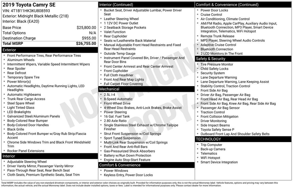 https://qualityfordresearch.com/cars/Used/2019/Toyota/Camry/SE/170252952019 Toyota Camry SE