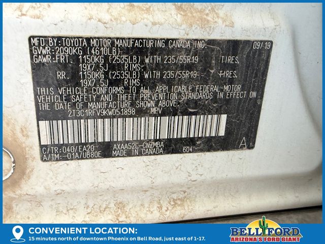 - VIN : 2T3C1RFV9KW051898