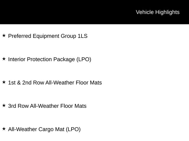 1st & 2nd Row All-Weather Floor Mats, 3rd Row All-Weather Floor Mats, All-Weather Cargo Mat (LPO), Interior Protection Package (LPO), Preferred Equipment Group 1LS.