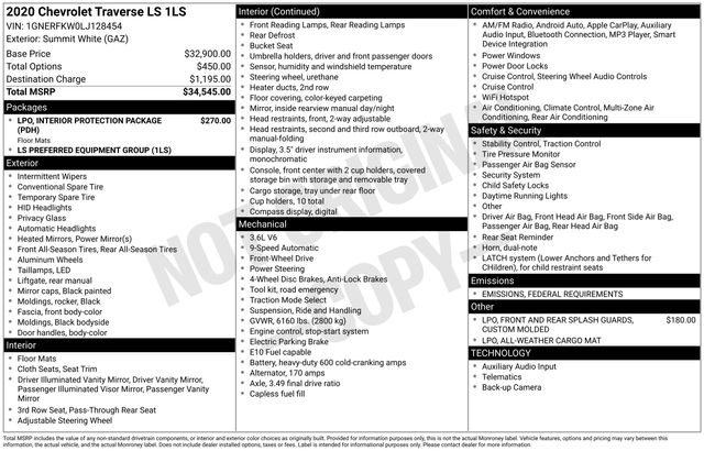 Summit White 2020 Chevrolet Traverse LS FWD 9-Speed Automatic 3.6L V6 SIDI VVT