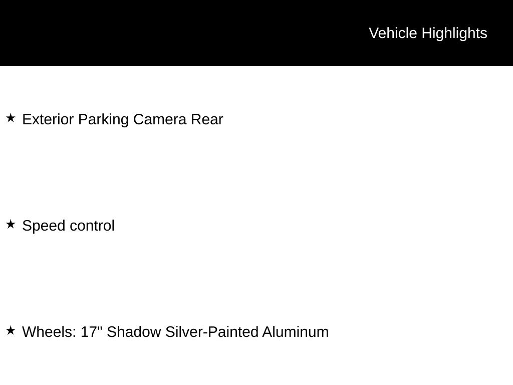 - Wheels: 17" Shadow Silver-Painted Aluminum