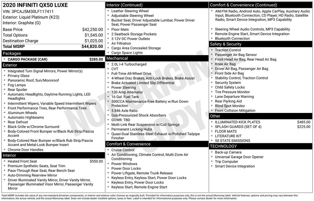https://qualityfordresearch.com/cars/Used/2020/INFINITI/QX50/LUXE/166557222020 INFINITI QX50 LUXE