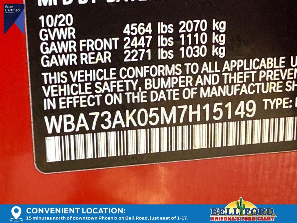 - VIN : WBA73AK05M7H15149
