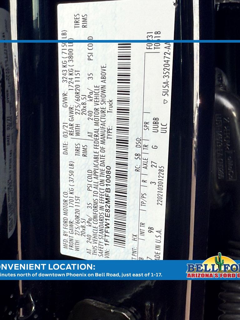- VIN : 1FTFW1E82MFB10080