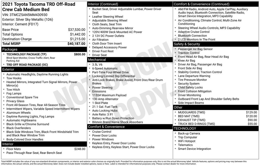 https://qualityfordresearch.com/cars/Used/2021/Toyota/Tacoma/TRD+Off-Road/171070292021 Toyota Tacoma TRD Off-Road