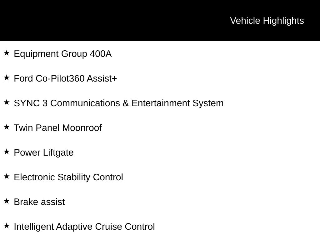 Ford Co-Pilot360 Assist+, including Speed Sign Recognition, Voice-Activated Touchscreen Navigation, and Intelligent Adaptive Cruise Control
