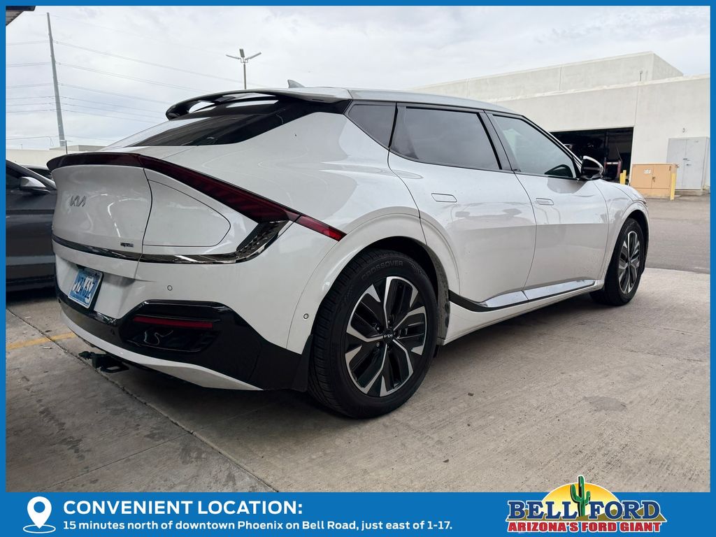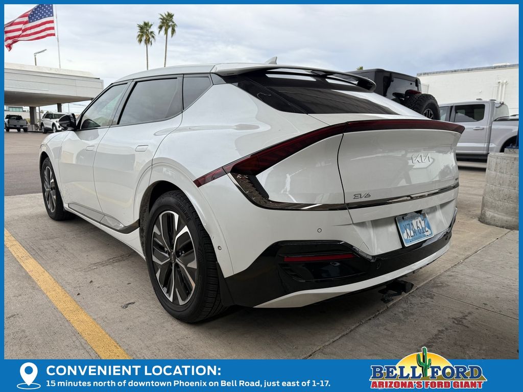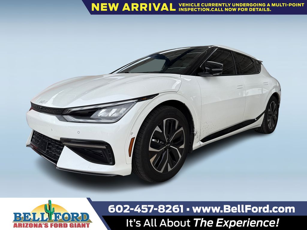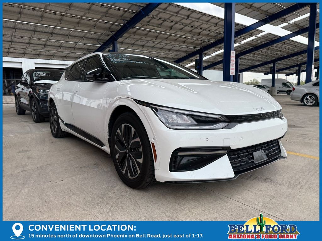 ** HERE AT BELL FORD ITS ALL ABOUT THE EXPERIENCE** Please visit us online at www.bellford.com This Kia EV6 is equipped with the following options: 14 Speakers, 4-Wheel Disc Brakes, ABS brakes, Air Conditioning, Alloy wheels, AM/FM radio: SiriusXM, Apple CarPlay & Android Auto, Auto High-beam Headlights, Auto-dimming Rear-View mirror, Automatic temperature control, Axle Ratio: 10.650, Brake assist, Bumpers: body-color, Delay-off headlights, Driver door bin, Driver vanity mirror, Dual front impact airbags, Dual front side impact airbags, Electronic Stability Control, Emergency communication system, Four wheel independent suspension, Front anti-roll bar, Front Bucket Seats, Front Center Armrest, Front dual zone A/C, Front reading lights, Fully automatic headlights, Garage door transmitter: HomeLink, Heads-Up Display, Heated & Ventilated Front Bucket Seats, Heated door mirrors, Heated front seats, Illuminated entry, Knee airbag, Low tire pressure warning, Memory seat, Navigation system: AVN 5.0 Navigation System, Occupant sensing airbag, Outside temperature display, Overhead airbag, Overhead console, Panic alarm, Passenger door bin, Passenger vanity mirror, Power door mirrors, Power driver seat, Power Liftgate, Power moonroof, Power passenger seat, Power steering, Power windows, Radio: Meridian Premium Audio System, Rain sensing wipers, Rear anti-roll bar, Rear seat center armrest, Rear window defroster, Remote keyless entry, Security system, Smart Key w/ Push Button and Remote Start, Speed control, Speed-sensing steering, Split folding rear seat, Spoiler, Sport steering wheel, Steering wheel mounted audio controls, Telescoping steering wheel, Tilt steering wheel, Traction control, Trip computer, Turn signal indicator mirrors, Variably intermittent wipers, Vegan Leather Seat Trim, Ventilated front seats, Wheel Locks, and Wheels: 7.5J x 19" Black Painted AlloY.