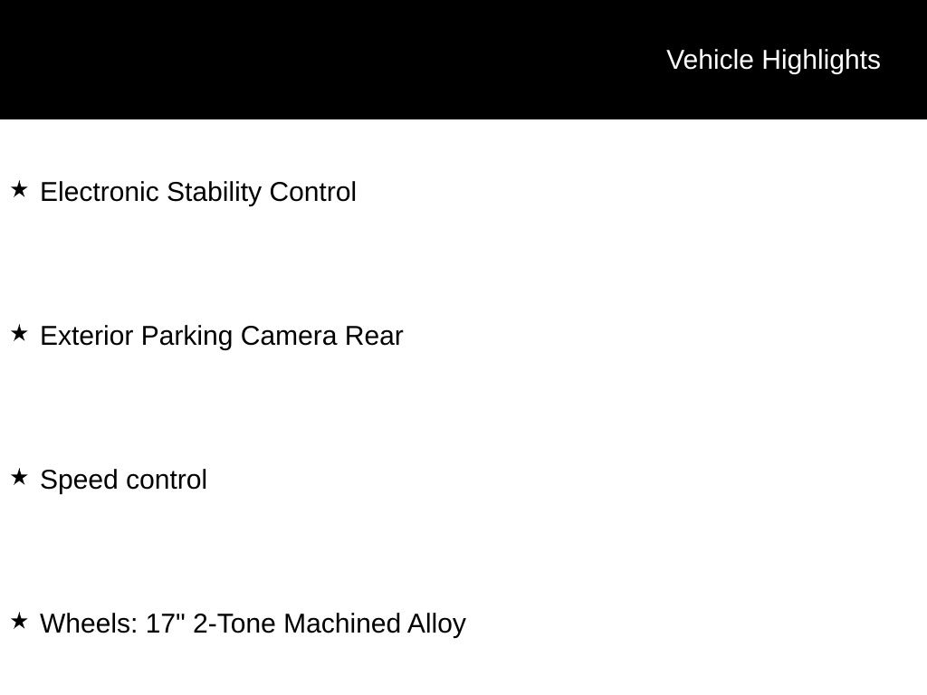 - Wheels: 17" 2-Tone Machined Alloy