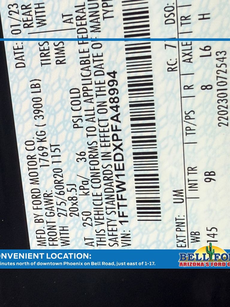 - VIN : 1FTFW1EDXPFA48994
