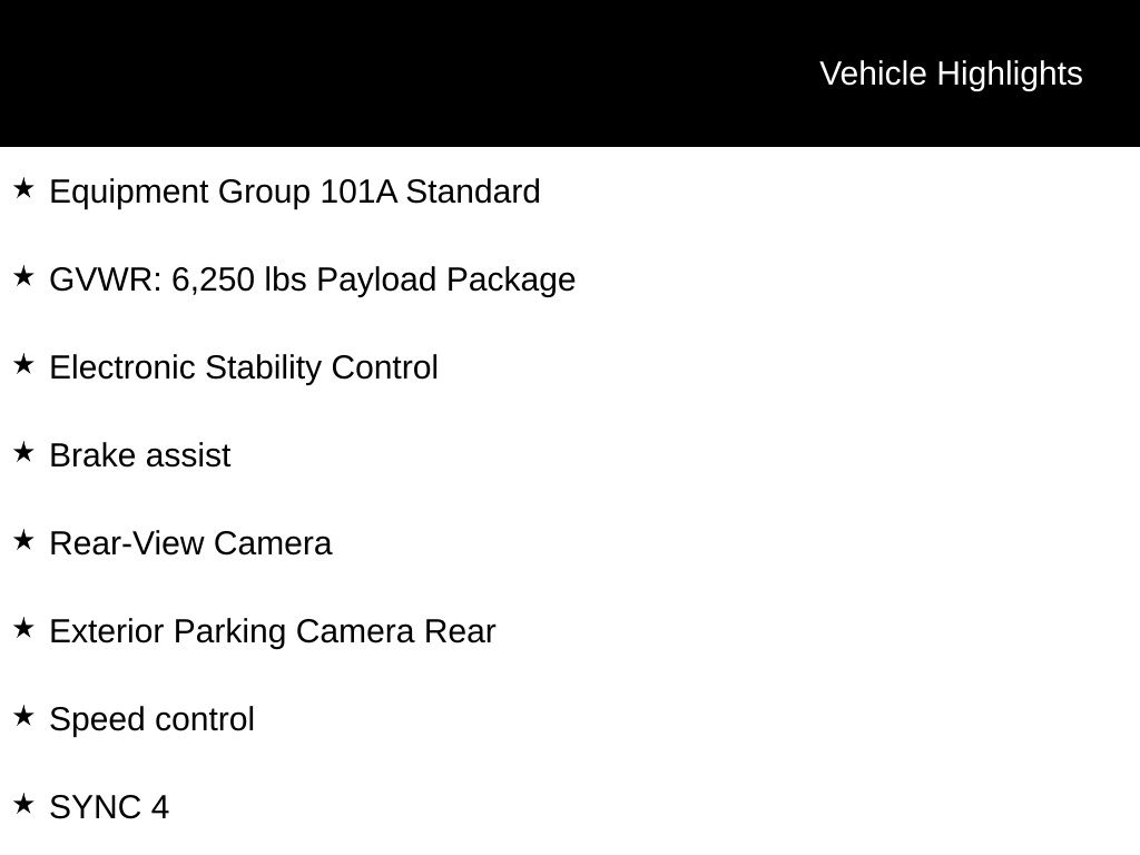 Inside, you'll find a well-appointed cabin with features like air conditioning, power windows, and remote keyless entry. The SYNC 4 infotainment system keeps you connected and entertained, while the 6-speaker audio system provides a premium listening experience.