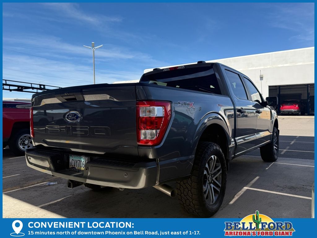 ** HERE AT BELL FORD ITS ALL ABOUT THE EXPERIENCE** Please visit us online at www.bellford.com This Ford F-150 is equipped with the following options: Equipment Group 101A Standard, STX Appearance Package (Body-Color Front & Rear Bumpers, Box Side Decals, Molded-In Color Black Honeycomb Style Grille, Radio: AM/FM SiriusXM w/360L, Rear Window Fixed Privacy Glass w/Defroster, SYNC 4 w/Enhanced Voice Recognition, Unique Sport Cloth 40/20/40 Front-Seats, and Wheels: 18" 6-Spoke Machined Aluminum), Ford Gold Certified Certified, 4WD, 20" 6-Spoke Machined-Aluminum Wheels, 3.31 Axle Ratio, 4-Wheel Disc Brakes, 6 Speakers, ABS brakes, Air Conditioning, AM/FM radio, Auto High Beam, Auto High-beam Headlights, Brake assist, Class IV Trailer Hitch Receiver, Cloth 40/20/40 Front Seat, Color-Coordinated Carpet w/Carpeted Floor Mats, Compass, Delay-off headlights, Driver door bin, Driver/Passenger Seat Back Pocket, Dual front impact airbags, Dual front side impact airbags, Electronic Locking w/3.31 Axle Ratio, Electronic Stability Control, Emergency communication system: SYNC 4 911 Assist, Extended Range 36 Gallon Fuel Tank, Exterior Parking Camera Rear, Fog Lamps w/Black Bezels, Front anti-roll bar, Front Center Armrest, Front reading lights, Front wheel independent suspension, Fully automatic headlights, Heated door mirrors, Illuminated entry, Lane-Keeping System, Low tire pressure warning, Manual Driver/Passenger Lumbar, Occupant sensing airbag, Outside temperature display, Overhead airbag, Overhead console, Panic alarm, Passenger door bin, Passenger vanity mirror, Post-Collision Braking, Power door mirrors, Power steering, Power windows, Pre-Collision Assist w/Automatic Emergency Braking, Radio data system, Radio: AM/FM Stereo w/6 Speakers, Rear step bumper, Rear Window Defroster, Rear-View Camera, Remote keyless entry, Reverse Sensing System, Security system, Speed control, Speed-sensing steering, Split folding rear seat, Steering wheel mounted audio controls, SYNC 4, Tachometer, Telescoping steering wheel, Tilt steering wheel, Traction control, Trip computer, Variably intermittent wipers, Voltmeter, and Wheels: 17" Silver SteeL.