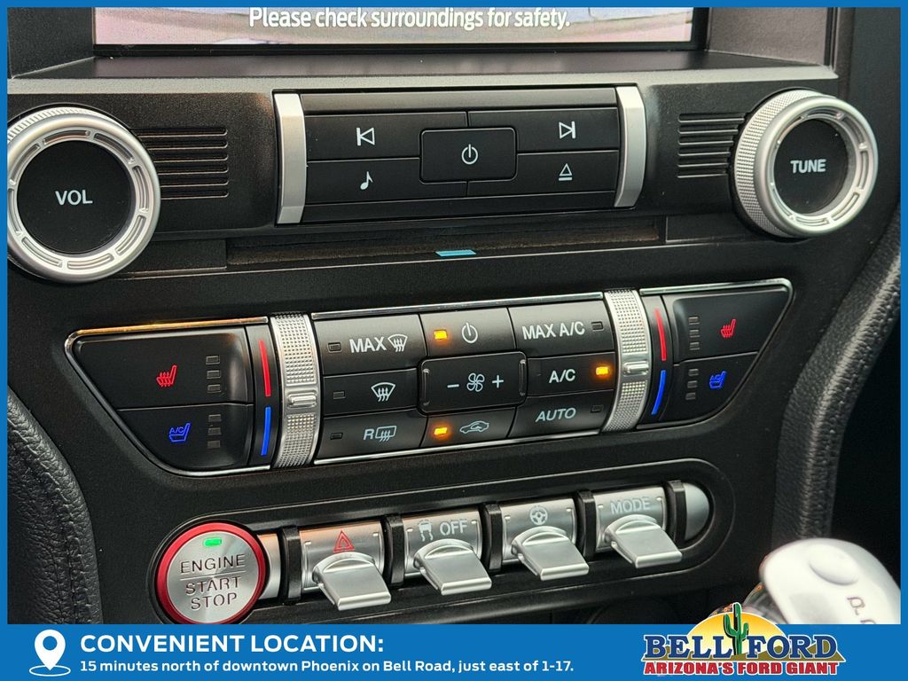 Enhancing the Mustang's already impressive performance credentials, this model is equipped with the Ford Safe & Smart Package, which includes advanced safety features like Adaptive Cruise Control and Integrated Turn Signals. The 12" LCD Digital Instrument Cluster with MyColor allows you to customize the display to your preferences, while the Heated Steering Wheel and Leather-Trimmed Bucket Seats with Color Accents add a touch of luxury and comfort to your daily commute.
