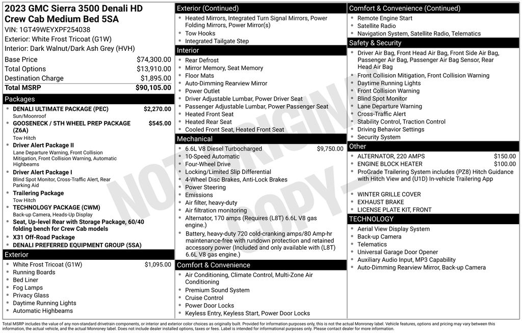 This 2023 GMC Sierra 3500HD Denali comes equipped with an impressive list of premium features, including: