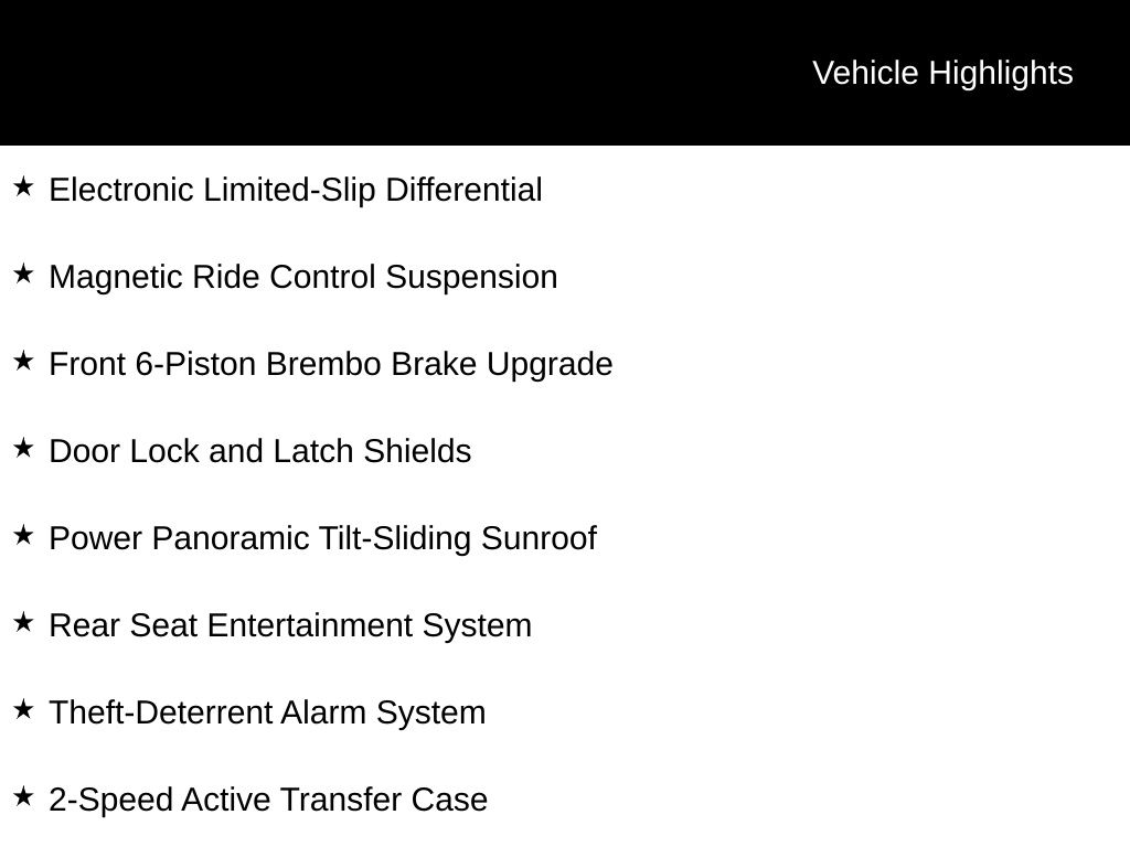 Step inside the cabin, and you'll be enveloped in a world of unparalleled luxury. The Platinum Interior Trim, Heated and Ventilated Driver and Front Passenger Seats, and Power Lumbar Massage Seats provide the ultimate in comfort and relaxation. The Reconfigurable Full-Color Head-Up Display and the Trailering App ensure you have all the information you need at your fingertips, while the Rear Seat Entertainment System keeps your passengers entertained on the go.
