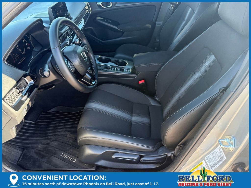 The Civic Sport's sleek exterior, complemented by its 18-inch gloss black alloy wheels, exudes a bold and confident presence. Step inside, and you'll be greeted by a well-appointed interior featuring cloth/leatherette seating surfaces, a leather-wrapped steering wheel, and a host of advanced technologies to enhance your driving experience.
