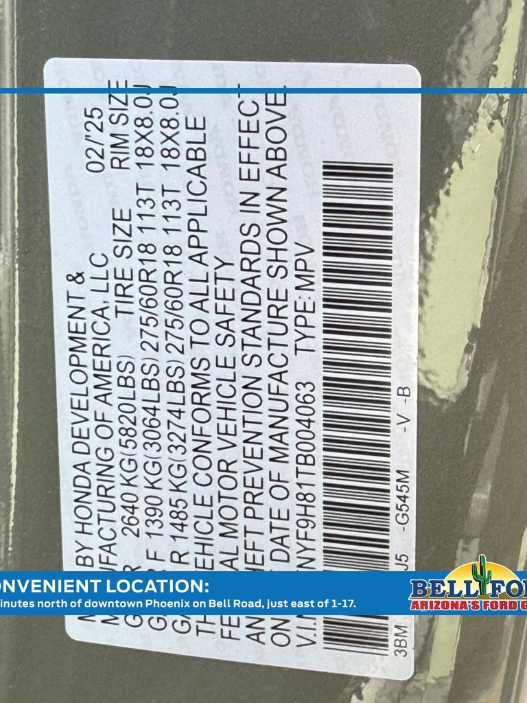 - VIN : 5FNYF9H81TB004063